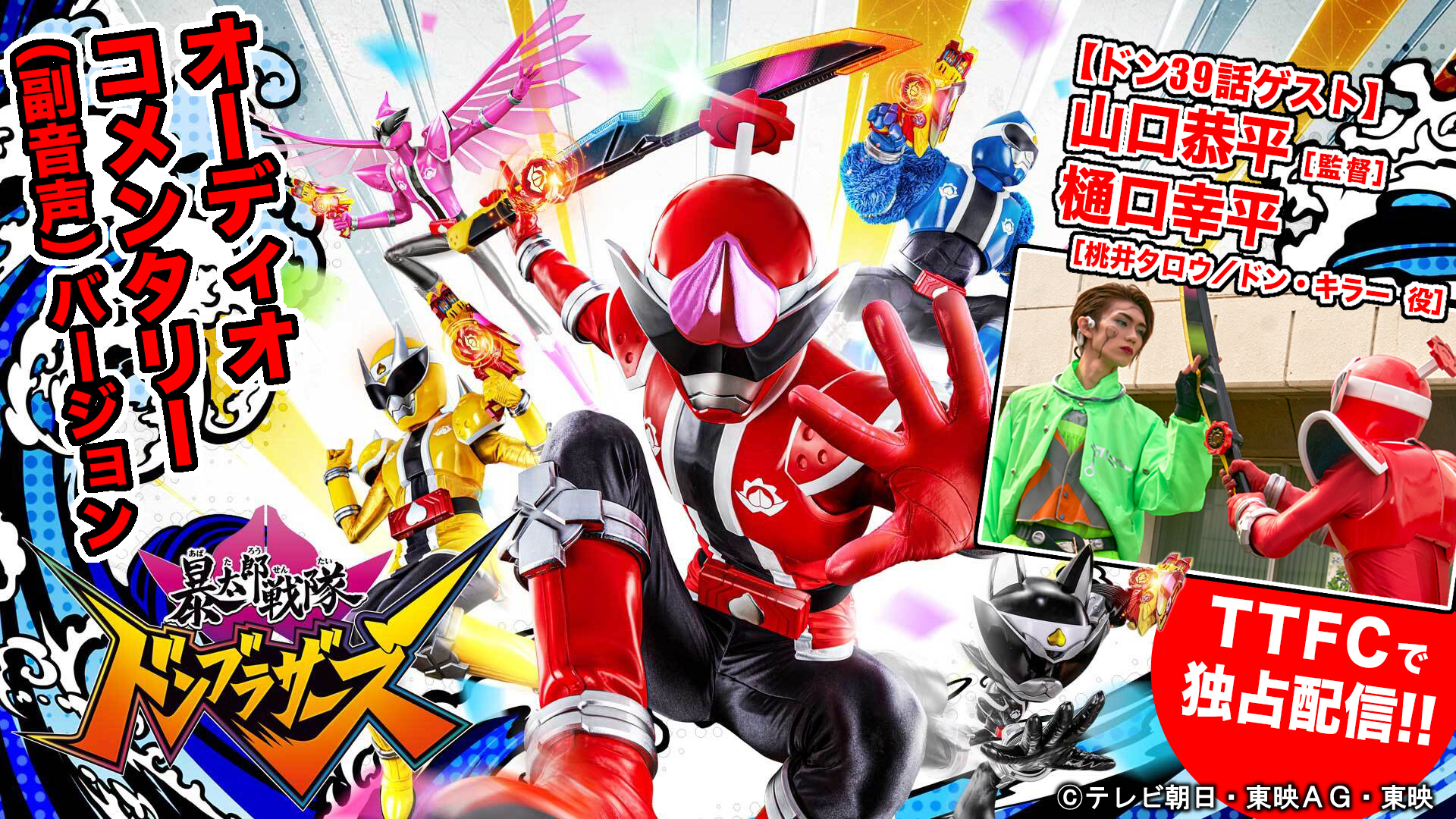 TTFCでは『暴太郎戦隊ドンブラザーズ』ドン1話〜ドン39話までの全話のオーディオコメンタリー(副音声)を会員見放題配信中!