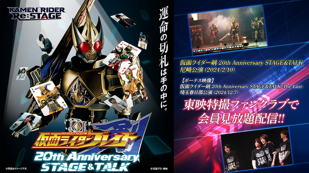『仮面ライダー剣(ブレイド)』20周年を記念して行われた、ステージイベント「仮面ライダー剣 20th Anniversary STAGE&TALK 尼崎公演」(2024年2月10日実施)を収録した映像が、東映特撮ファンクラブ(TTFC)にて、来週1月25日(土)8時より配信!