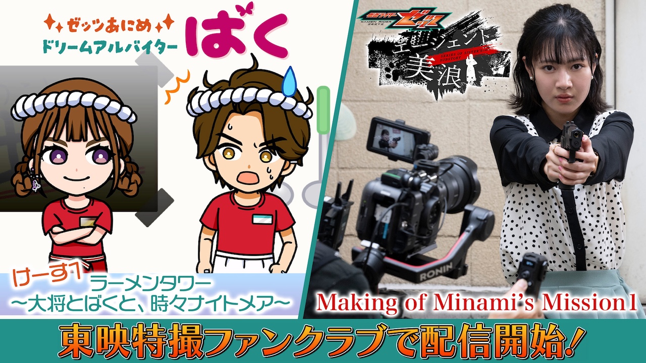 本日12月28日(日)9時より『仮面ライダーゼッツ』のオリジナルショートアニメ『ゼッツあにめ ドリームアルバイターばく けーす1 ラーメンタワー~大将とばくと、時々ナイトメア~』と、『ゼッツ』のオリジナルミニドラマ『エージェント美浪』のメイキング映像・第1弾『Making of Minami’s Mission1』が配信開始!