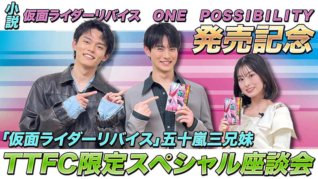 2月2日に「小説 仮面ライダーリバイス ONE POSSIBILITY」が講談社より発売されることを記念して、『仮面ライダーリバイス』の五十嵐三兄妹が集結! 兄妹を演じた【前田拳太郎】、【日向 亘】、【井本彩花】の3人が揃ったTTFC限定のスペシャル座談会を会員見放題配信!