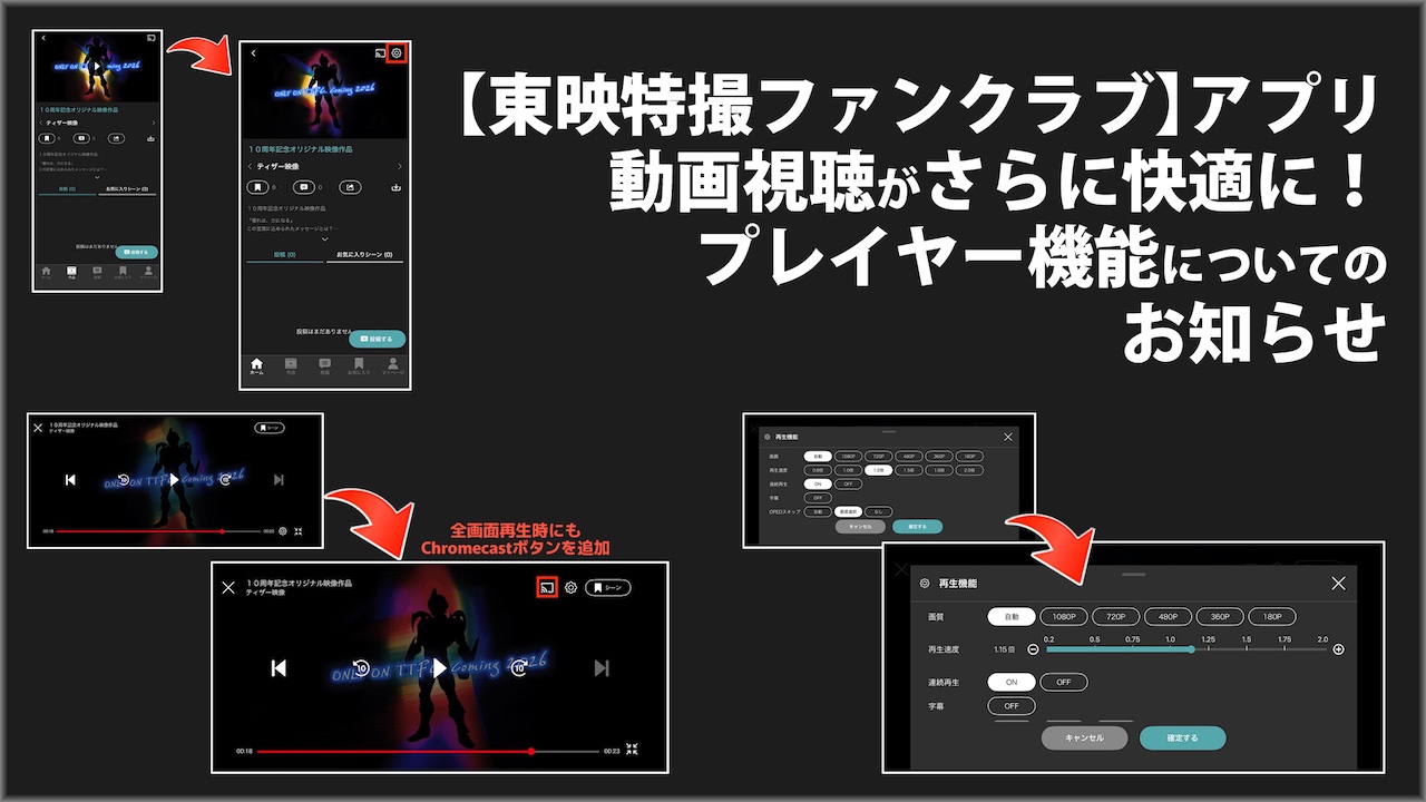 東映特撮ファンクラブ(TTFC)の動画プレイヤーが、さらに使いやすく進化しました!