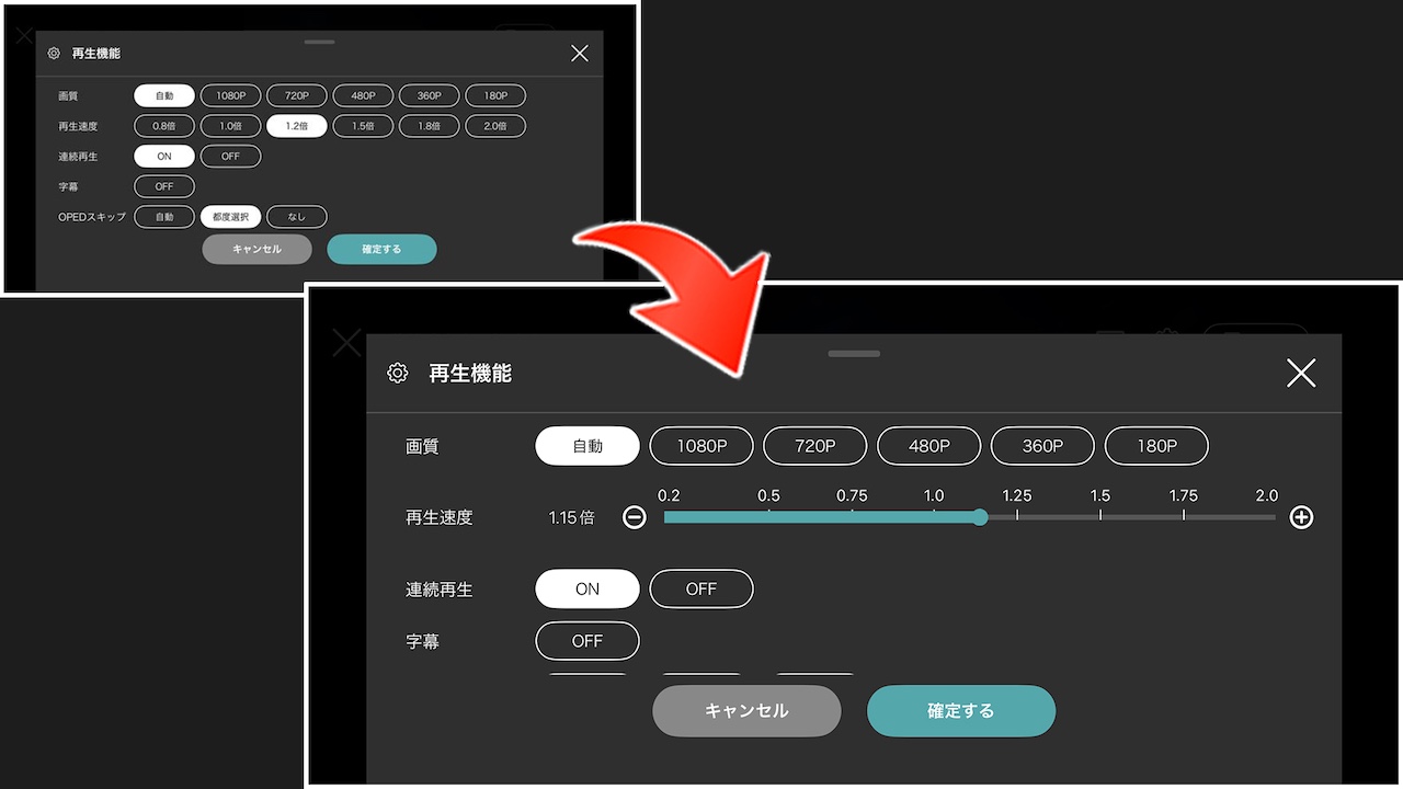 これにより、全画面表示に切り替えることなく、再生に関する設定をスムーズに変更できるようになりました。