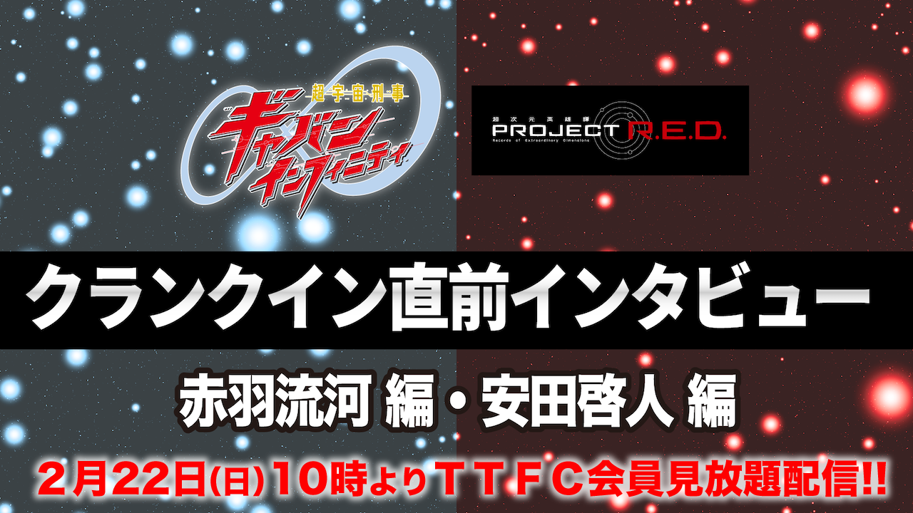 大人気放送中の『超宇宙刑事ギャバン インフィニティ』! 東映特撮ファンクラブ(TTFC)会員限定で、出演キャストへのクランクイン直前インタビューを本日2月22日(日)10時より配信!!