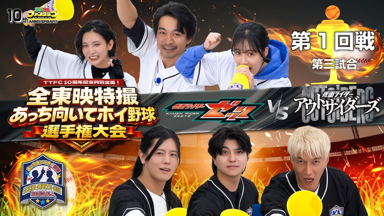 東映特撮ファンクラブがサービス開始から10周年を迎えたことを記念して、キャストバラエティの人気企画「あっち向いてホイ野球」の特別編、題して『全東映特撮 あっち向いてホイ野球選手権大会』を開催!
