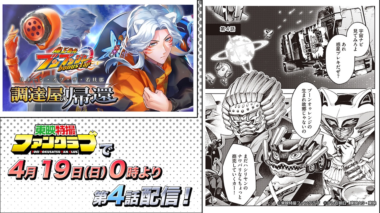TTFC10周年企画の1つとして展開中の電子コミック『爆上戦隊ブンブンジャー bonus lap 調達屋の帰還(リターン・オブ・ザ・若旦那)』。最新エピソードの第4話を、4月19日(日)0時より東映特撮ファンクラブ(TTFC)で会員読み放題配信中!