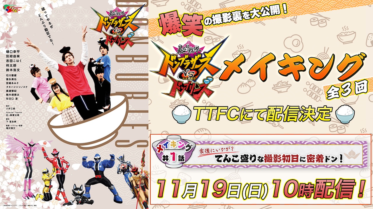 これぞ「ドンブラザーズ」!! 大好評配信中のTTFCオリジナル『暴太郎戦隊ドンブラザーズVS暴太郎戦隊ドンブリーズ』は撮影舞台裏も見どころいっぱい!