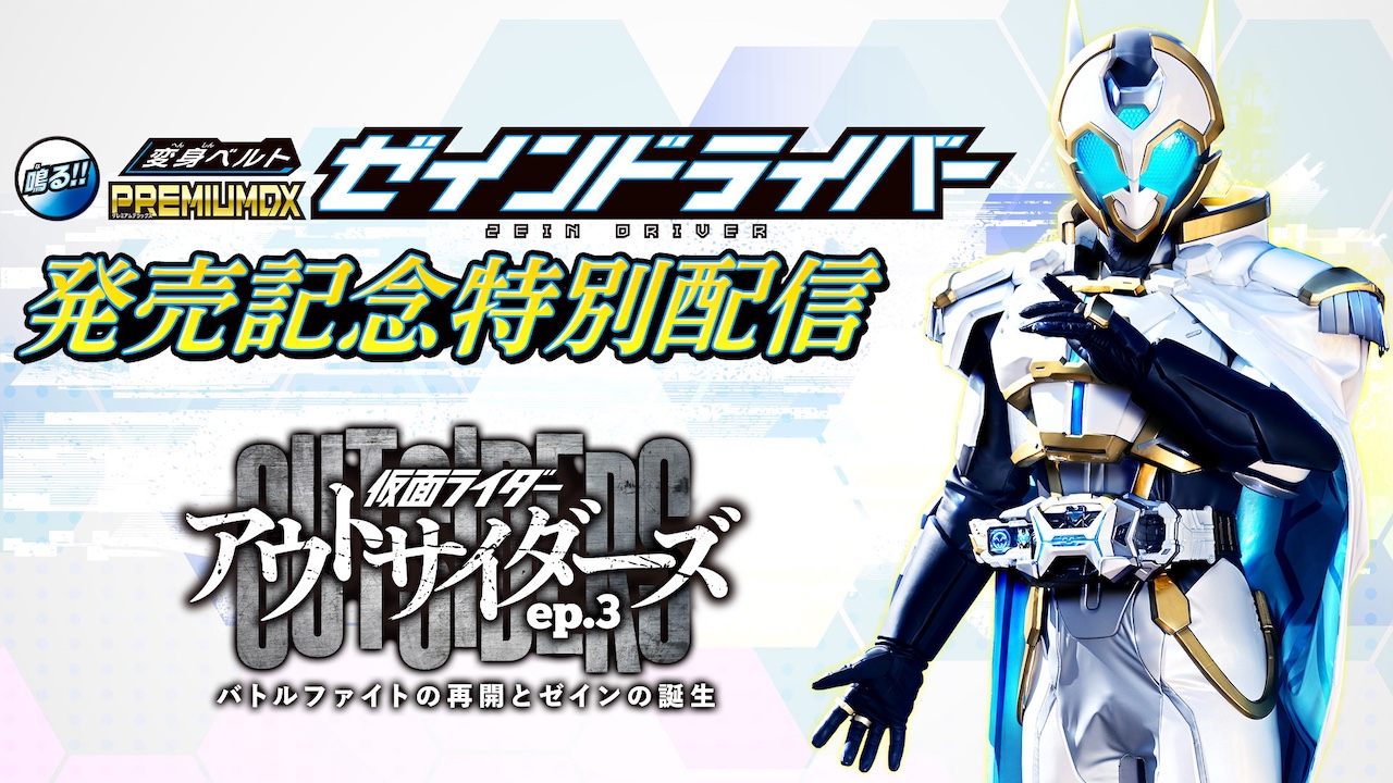 仮面ライダーゼインの変身アイテム「ゼインドライバー」を商品化した「変身ベルト PREMIUM DX ゼインドライバー」がプレミアムバンダイにて予約受付中(*)! この発売を記念して仮面ライダーゼインが初登場した『仮面ライダーアウトサイダーズep.3 バトルファイトの再開とゼインの誕生』を、東映特撮YouTube Officialで期間限定無料配信!!