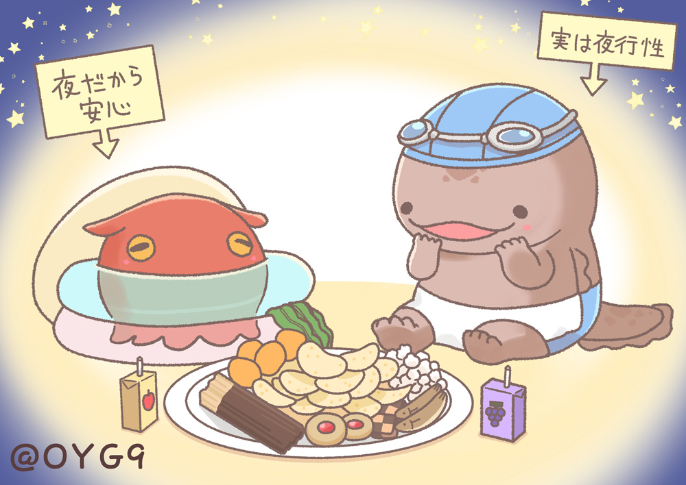 もともとおよげない。どこかにおよげるたいやきがいたようで、自分はかわうそたちと同じように、もともとはおよげたのが、およげなくなった、と思い込んでいる。