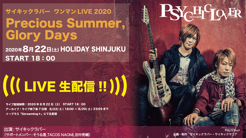 有料チケット制とさせていただき、生配信にて久しぶりにステージに揃うサイキックラバーとバンドメンバーのパワフルで熱いLIVEをお楽しみください!