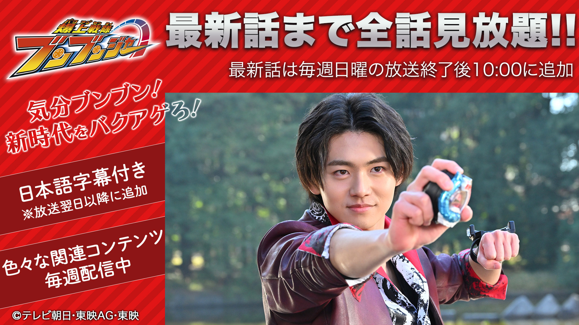 TTFC会員(*)なら『爆上戦隊ブンブンジャー』最新話までいつでも全話見放題になります。